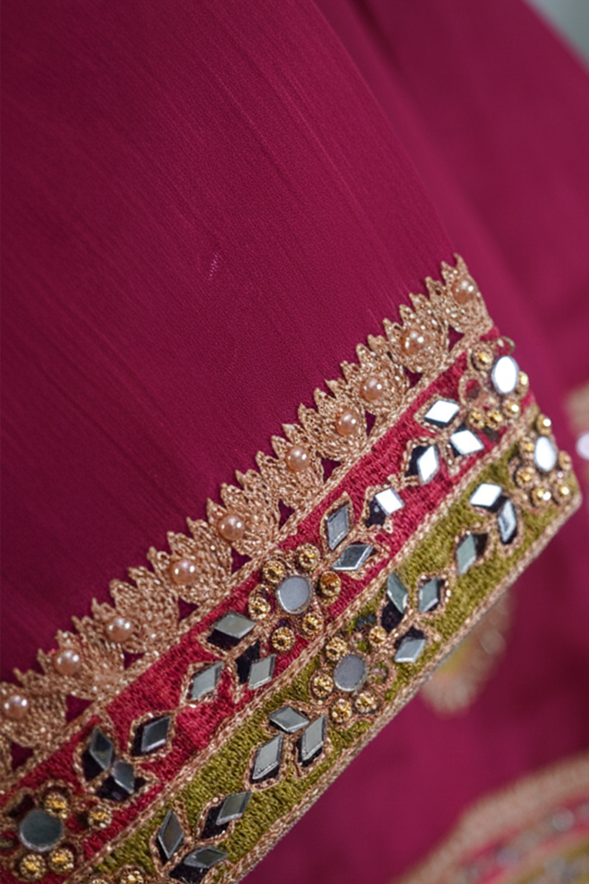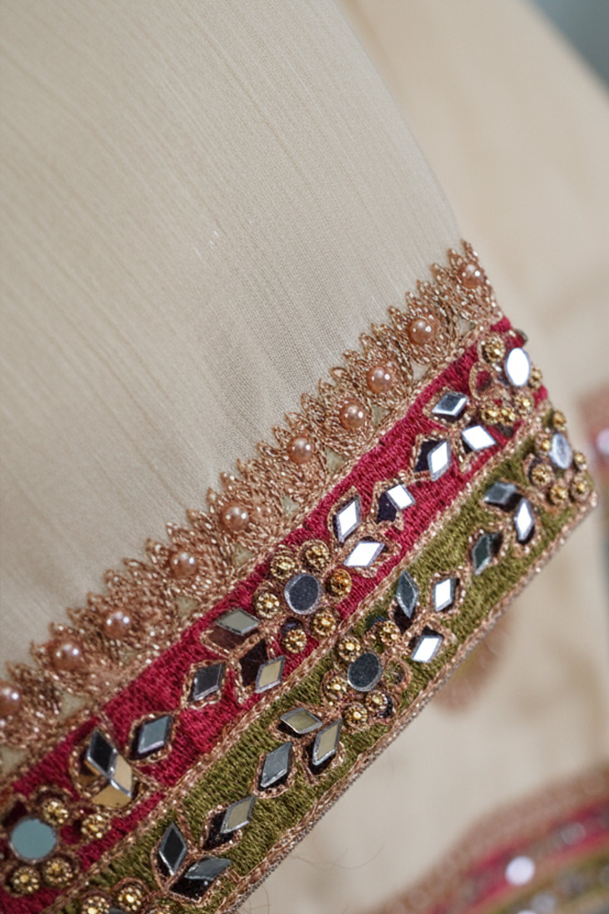 Front: Aari Thread embroidery with antique stone & mirror work