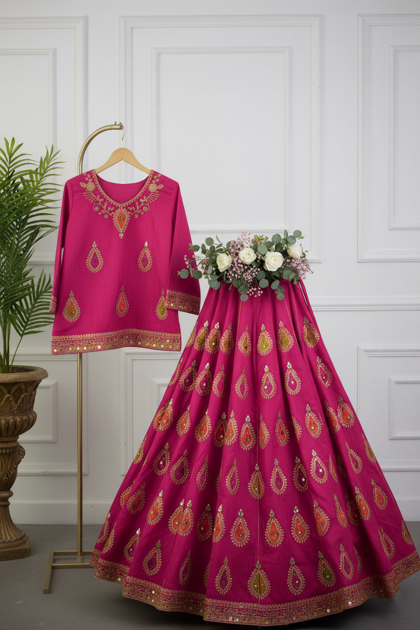 Package Includes: 1x Lehnga, 1x matching kurti (2 piece) & Attached can-can